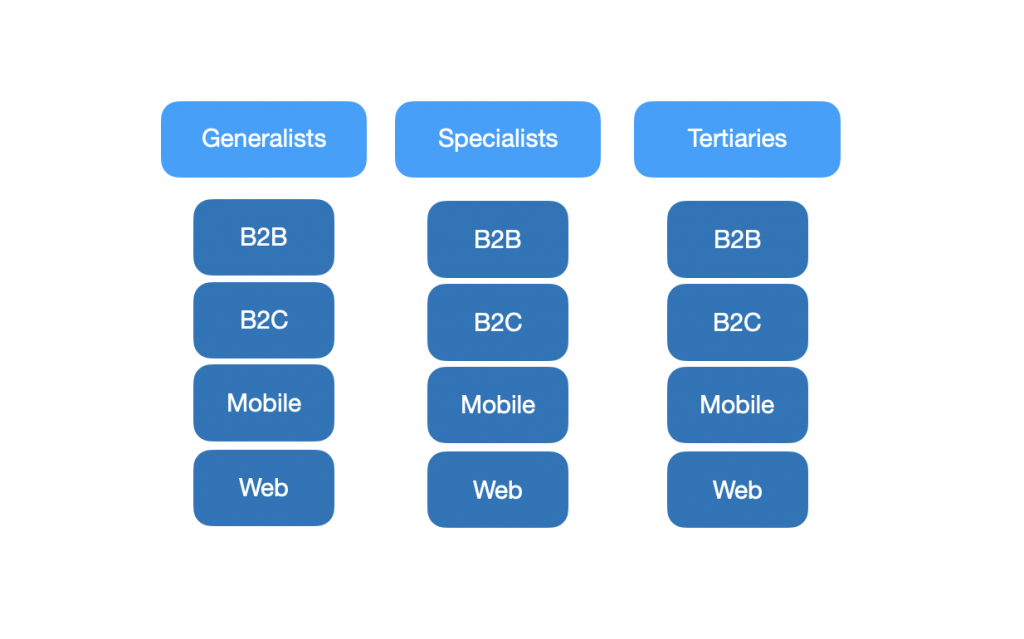 You’ll occasionally find a unicorn who’s a generalist and has experience in B2B, B2C, mobile and web. If you do, recruit them immediately.